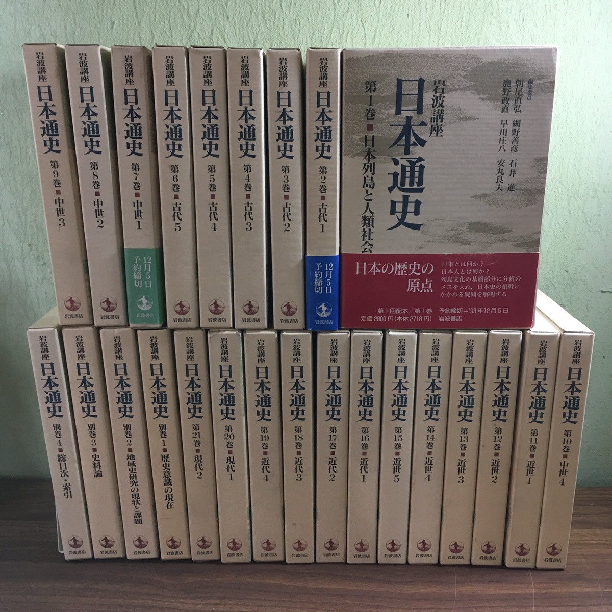 姫路市のA様より、岩波書店「日本通史」全25冊をお預かりいたしました。歴史が好きで、大好きな本らしいのですが、最近は小さな文字を読むのがしんどくて……とのことです。