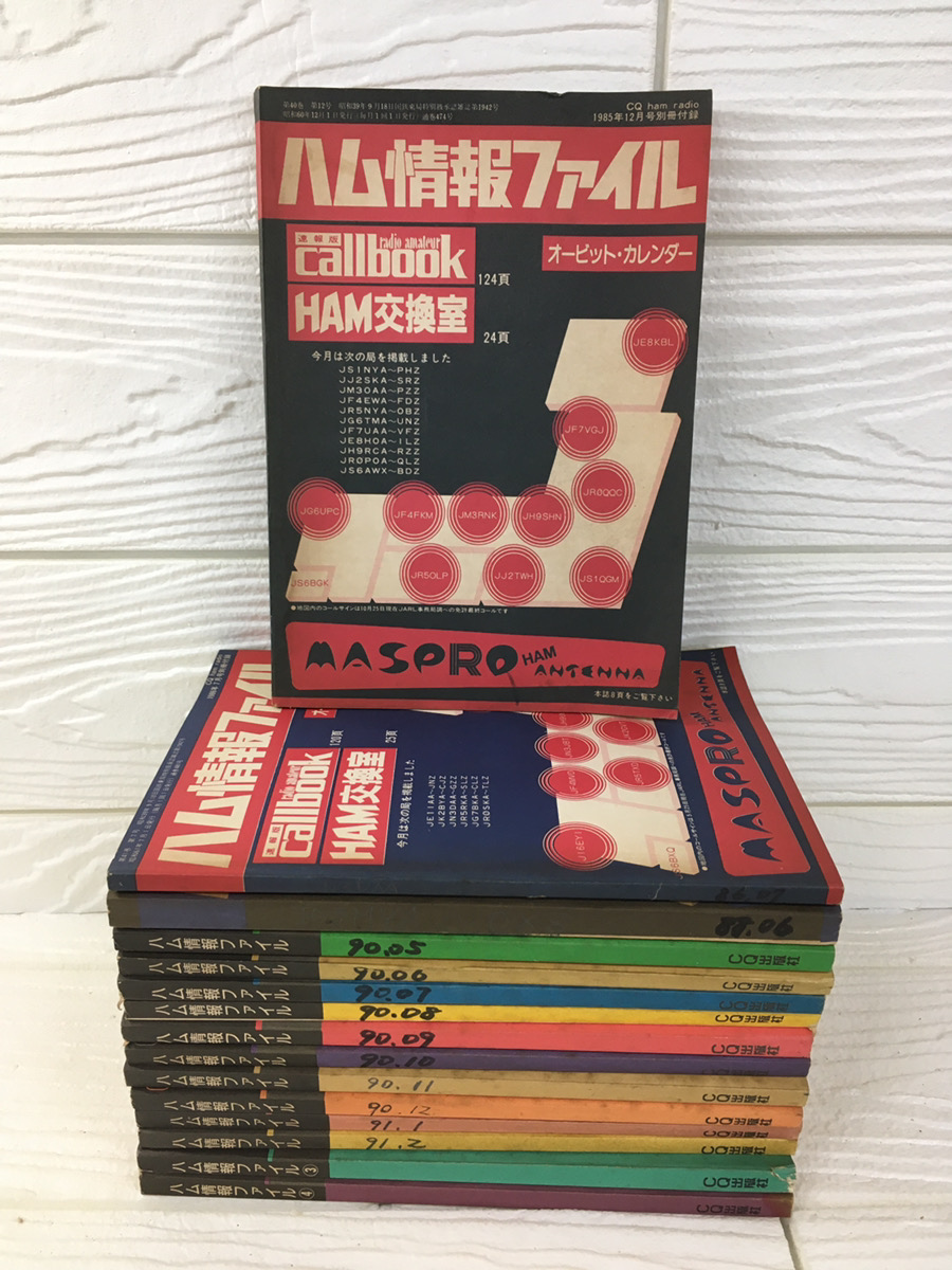 今回郵送で届いたのは、CQ出版社の『ハム情報ファイル』15冊。表紙にはシミが見られ、背表紙には「1990年○月」と手書きの書き込みもあります。一見、決して良い状態とは言えませんが、可能な限りのお値段をつけさせていただきました。